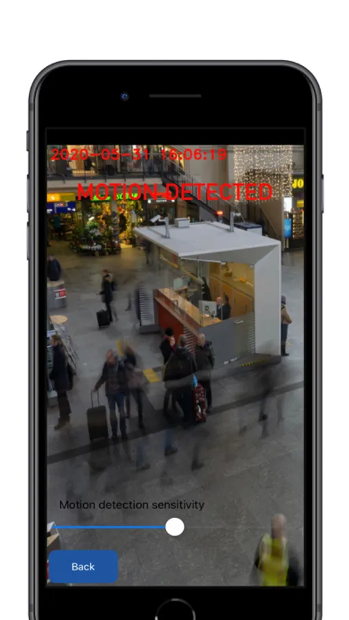 After switching on, the application starts motion detection. When the motion is detected, the program takes a picture and the data is sent to your iCloud Drive so your data is safe and only you have access to it.