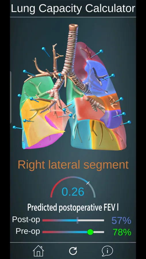 This preoperative planning and educational tool has four main components. A Lung Capacity Calculator with interactive tools to help assess patient’s lung capacity after surgery. An interactive Cancer Staging Calculator with in-depth descriptions and illustrations. A 3D anatomy viewer, which can show and hide various anatomical structures. It also includes the ability to interactively place tumors of various sizes in and around the lungs. Also included are some anatomical illustrations with the ability to annotate, draw, and save out images.