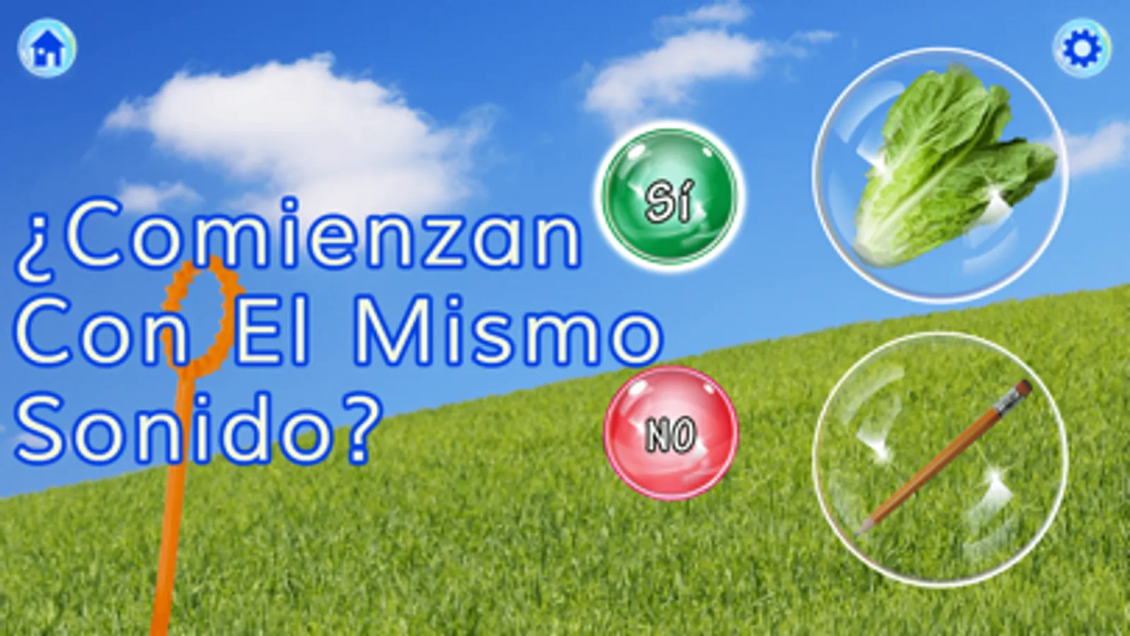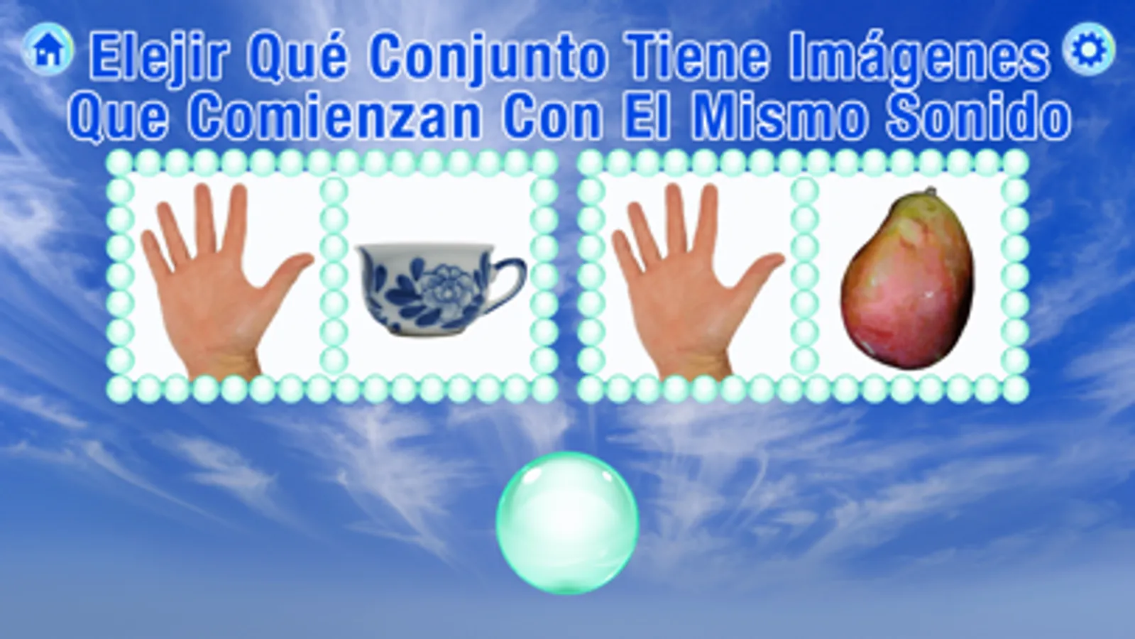 La aplicación tiene 2 juegos donde los niños combinan imágenes que comienzan con el mismo sonido. Otro juego tiene niños que eliminan la imagen con el sonido inicial que no coincide con los demás. En el juego final, los niños analizan dos imágenes y determinan si estas dos imágenes comienzan o no con el mismo sonido.