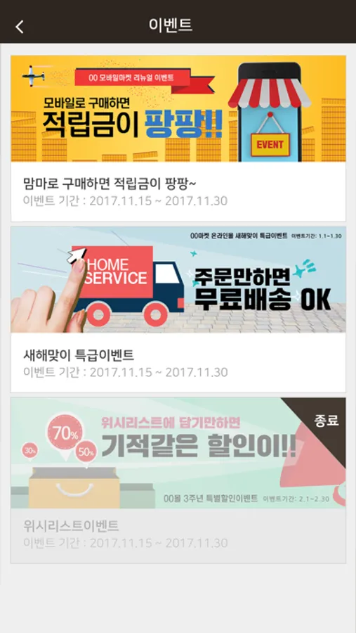 - 주문내역 : 모바일에서 주문 및 결제한 내역을 확인할 수 있는 기능