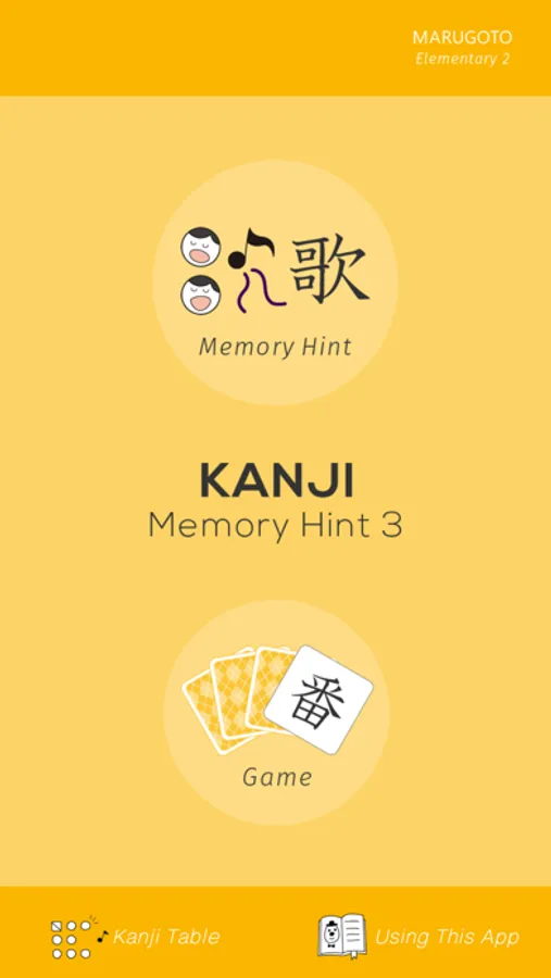KANJI Memory Hint 3 is an app that lets you check whether you have learned a "kanji" in a game after you have studied it using associative drawings.