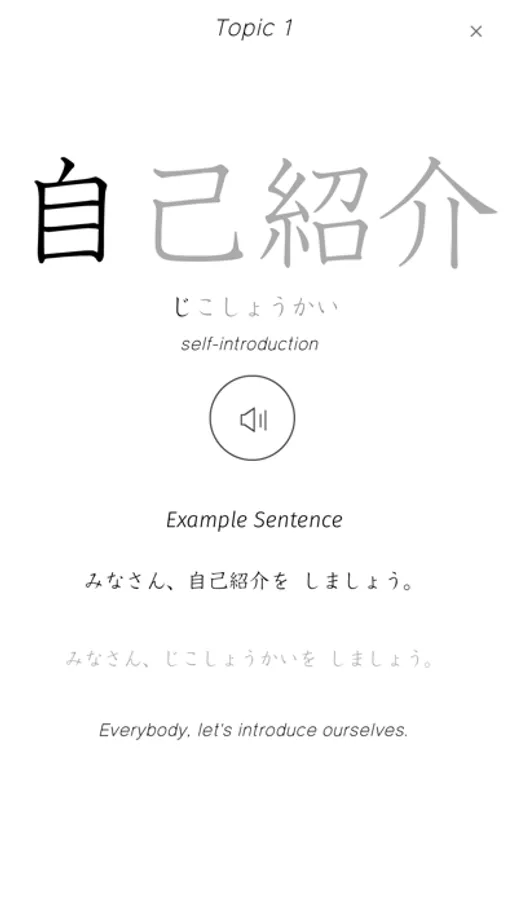 A Kanji table allows you to tap each Kanji to hear how kanji word is pronounced.