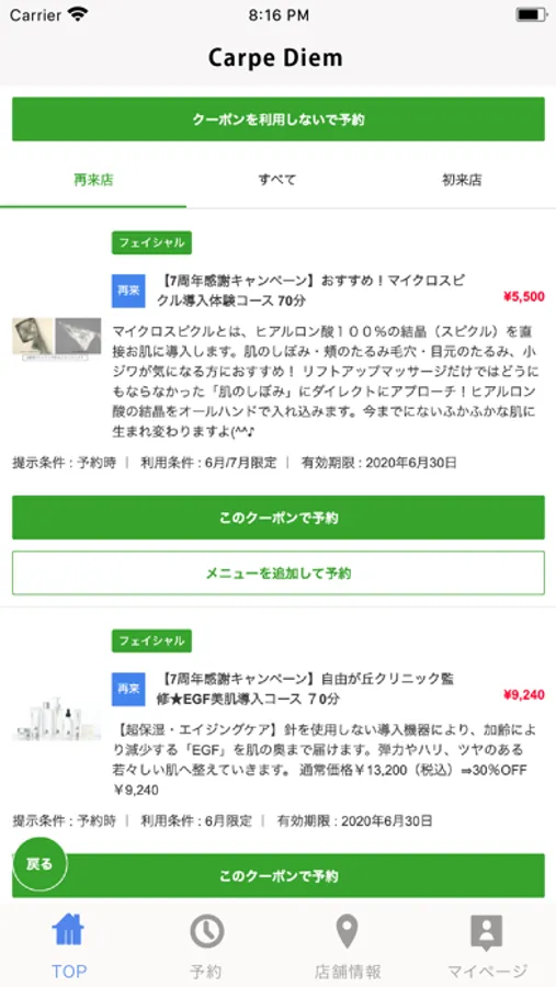 お得なクーポンが配信されます。ネット予約時にクーポン利用での予約も可能なので来店時もスムーズに施術頂けます。