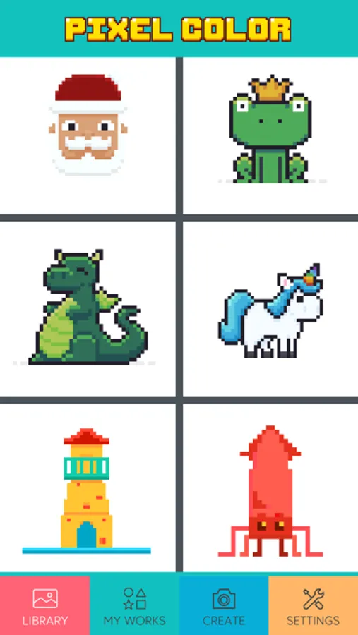The pixel coloring is also about your nostalgic feeling. Remember the simple good old days when Nintendo / Genesis is a part of our life? Let this color by number game bring back your memories.