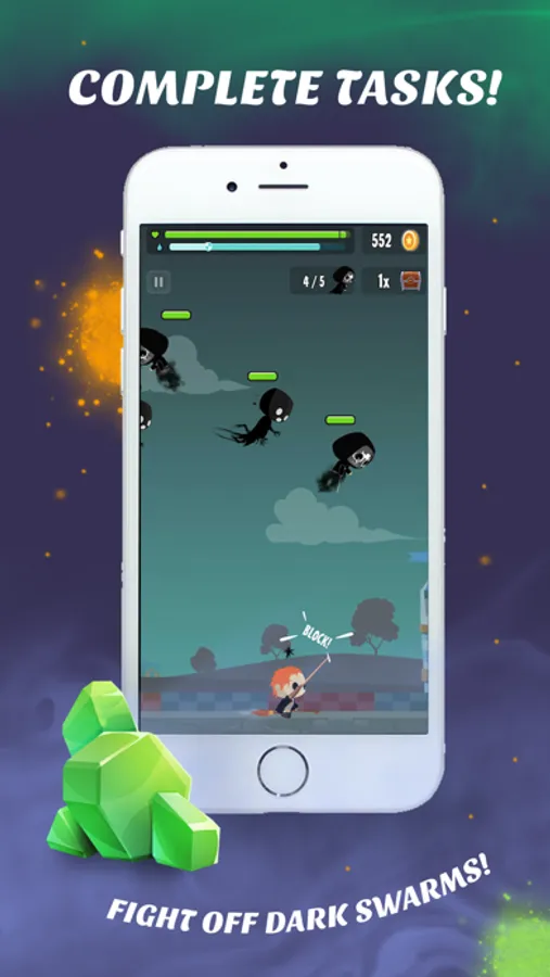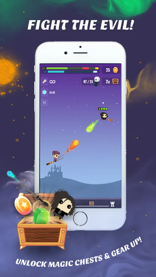 Cast powerful spells to defeat the dark lord, his witches and wizards!