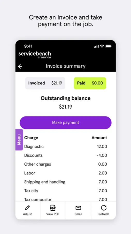Power up your technicians. Armed with the ServiceBench Mobile® app, techs can quickly process onsite jobs with ease.