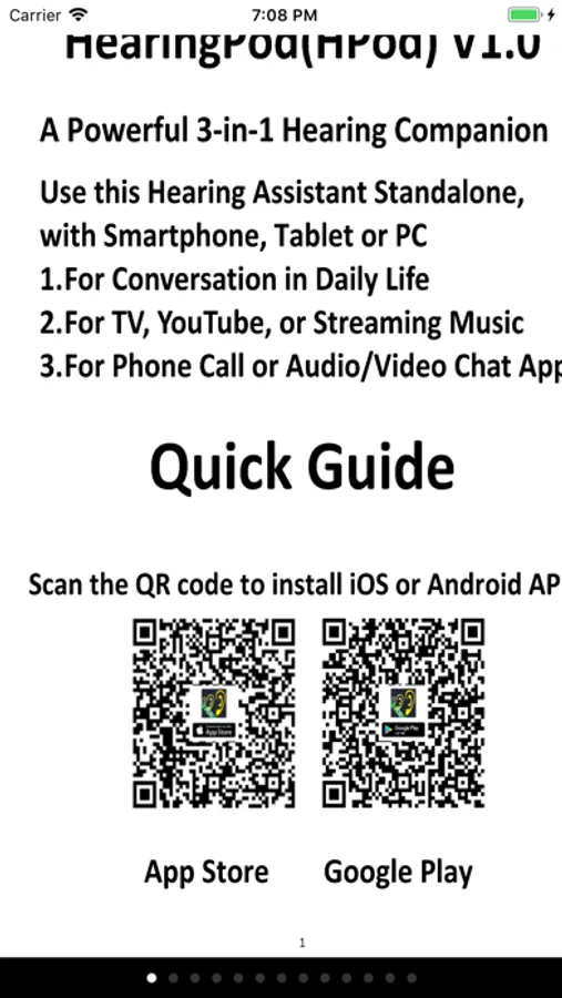 HearingPod App is designed to control and adjust the settings on HearingPod device.