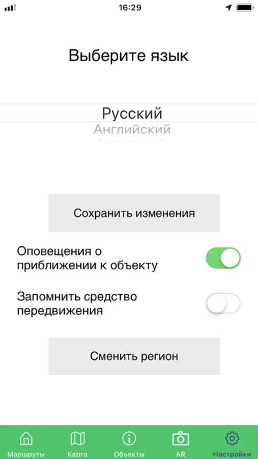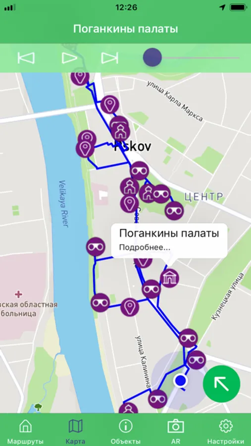 — отправка уведомлений при приближении к выбранному объекту маршрута;