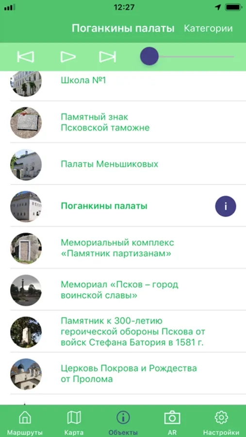 — воспроизведение аудиозаписей в заданной или произвольной последовательности в рамках туристического маршрута;
