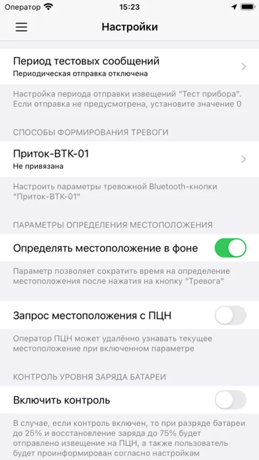 Приложение предназначено для передачи сигнала тревоги на пульт централизованного наблюдения (ПЦН)