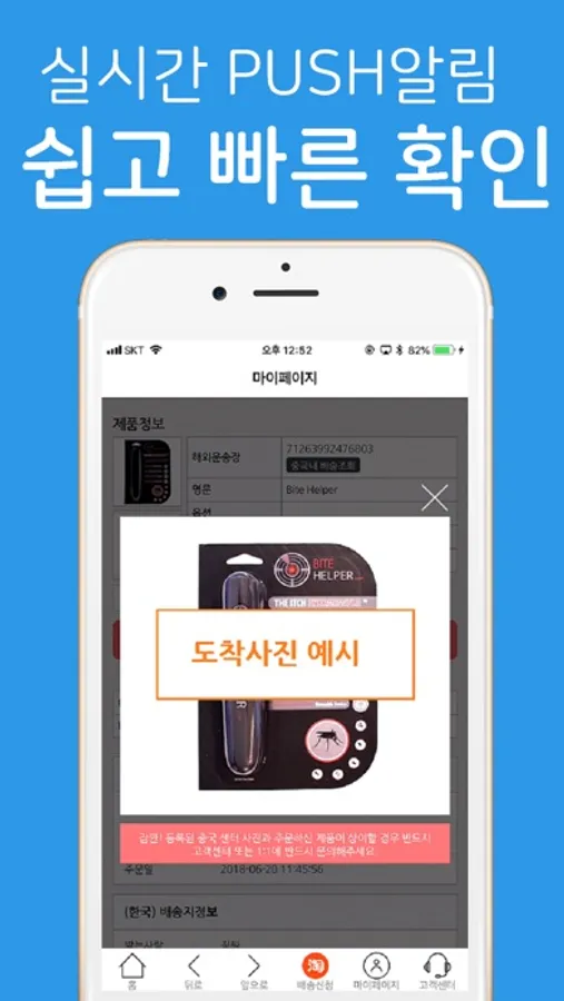 도착알림 PUSH를 통해 즉시 확인하는 제품 도착사진!