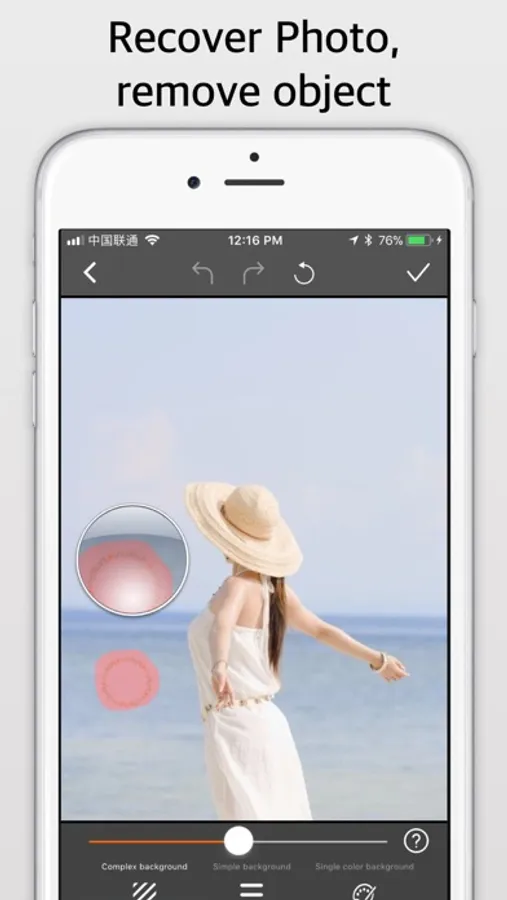 - Remove Items: There are three removal algorithms for Complex background, Simple background, Single color background. Select the matching background mode and smear the item