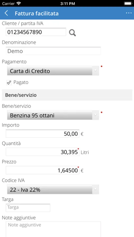 Compilazione automatica dei dati a partire dalla Partita IVA (°)