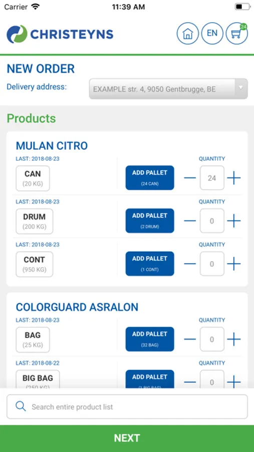 With this app customers can order Christeyns products. The products can be searched in the app. The app also offers waste collection for Christeyns customers.