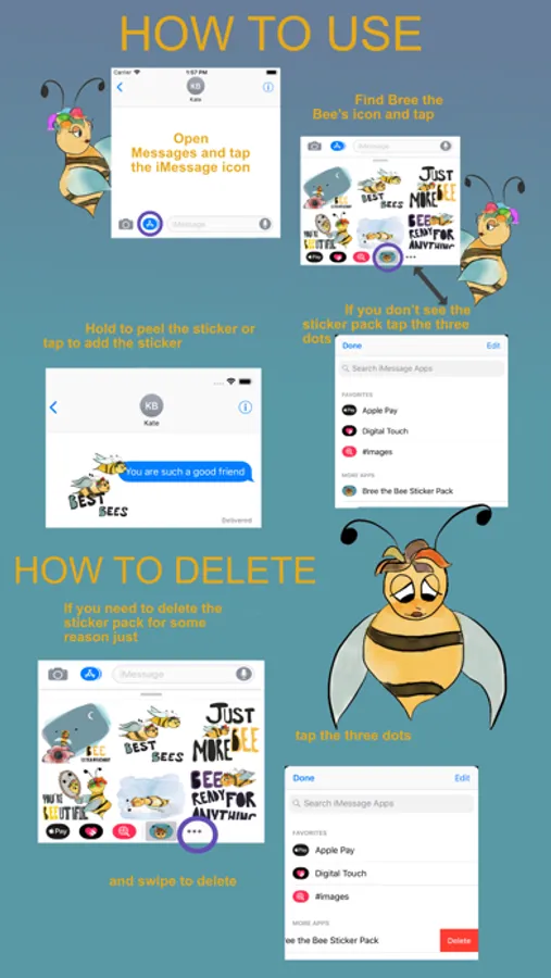 Bree the Bee is a collection of hand painted watercolor sticker animations perfect for quickly expressing encouragement and support.