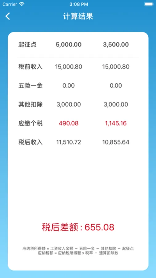 2.可以对比新个税起征点5000和老个税起征点3500的数据一目了然