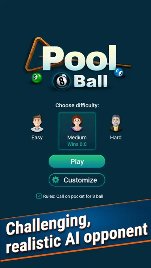 If you're a billiards fanatic looking for a challenge, look no further! 8-Ball is a traditional pool game that will be sure to test your skills. Elaborate, rich visuals track your ball's path and give you a realistic feel for where it'll land. Play against an AI opponent and put your expertise to the test in this must-play pool game!