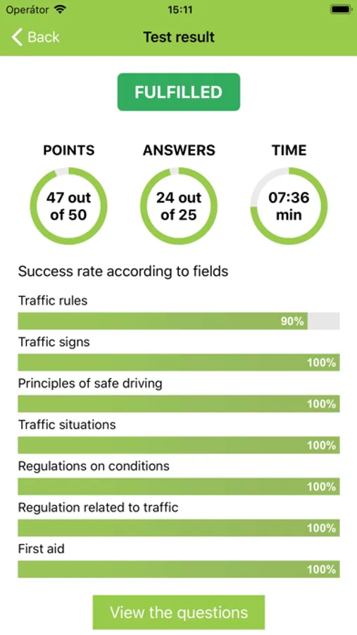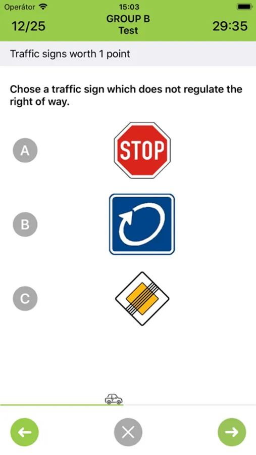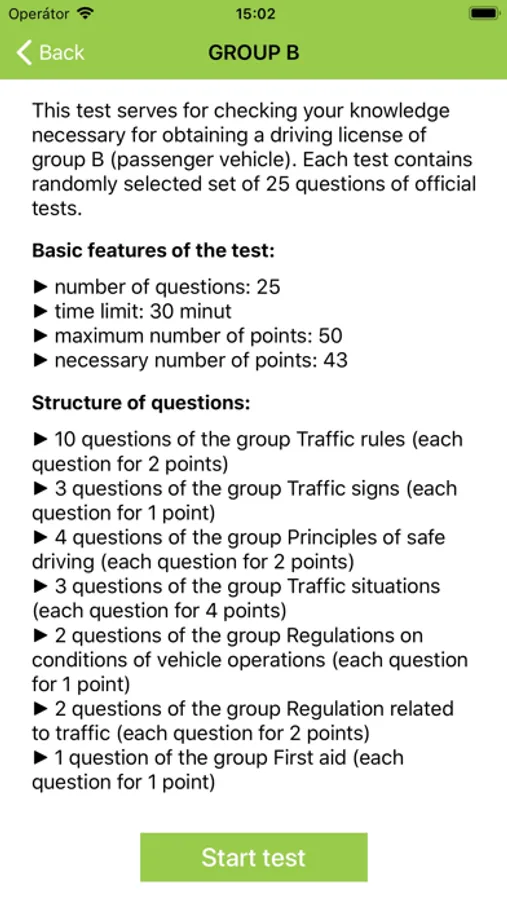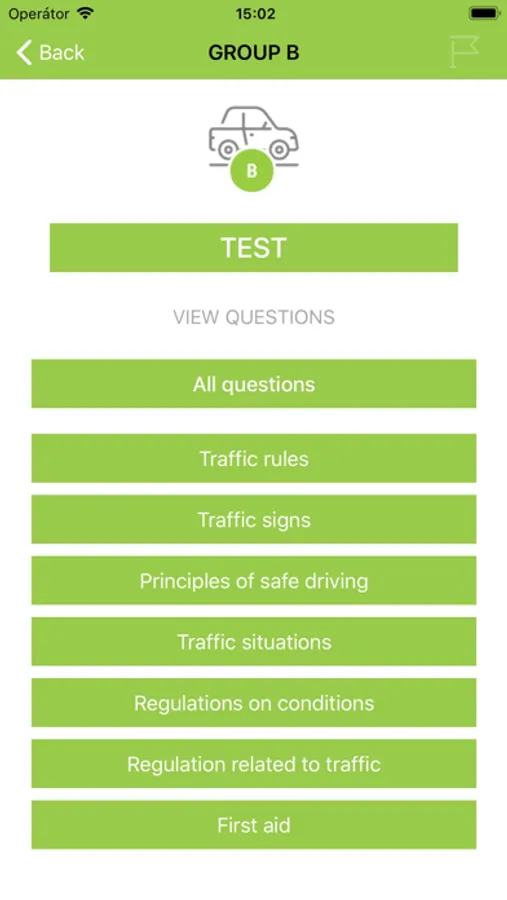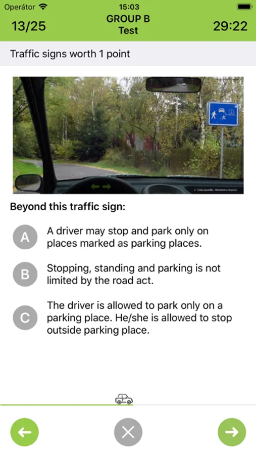 The application serves for preparation for a final test at the driving school in the Czech Republic.