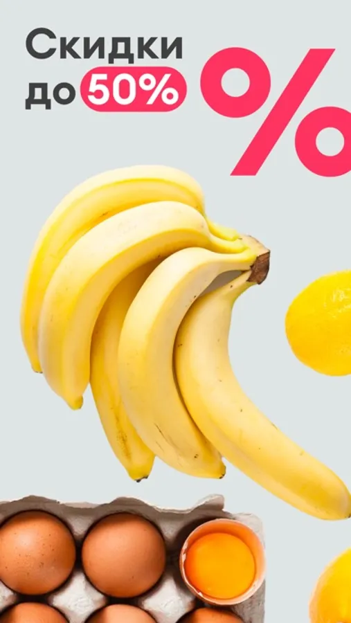 Мы проводим акции и каждый день обновляем скидки на продукты и напитки. Например, промокод SM100 даёт скидку 100 ₽ на три первых заказа. Акция действует, если оформить доставку продуктов на дом от 800 ₽.