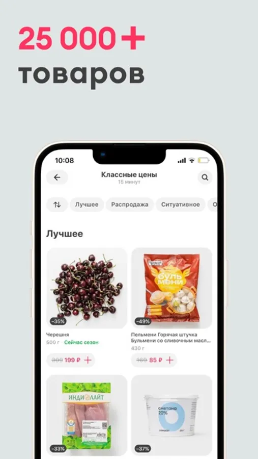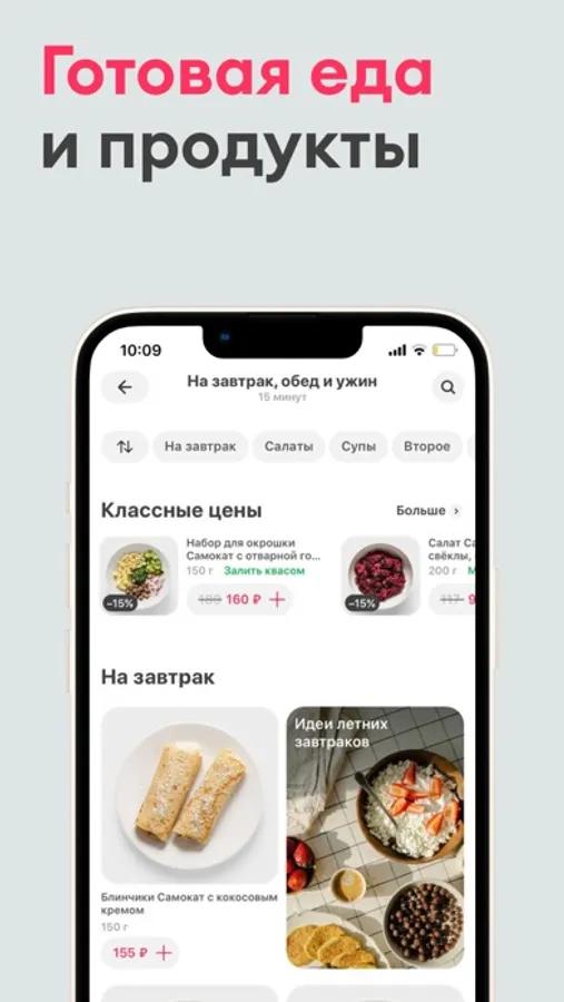 У нас есть Супермаркет. Это большой магазин, в котором в два раза больше всего. Например, там есть бытовая техника, экзотические фрукты и большие пачки корма для питомцев. Удобно, чтобы закупиться сразу на неделю. Время доставки — от 15 минут до 1,5 часа.