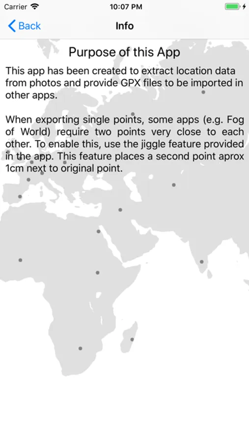 GPXExport let's you export location information stored in your photos as GPX file. This file can be saved to iCloud Drive or exported into other applications.