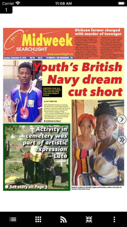 The Kingstown Searchlight eEdition app is an exact replica of the print edition which is published twice a week (Tuesdays and Fridays) in hard copy and as an e-paper and 24 hours a day, seven days a week on our social media platforms.