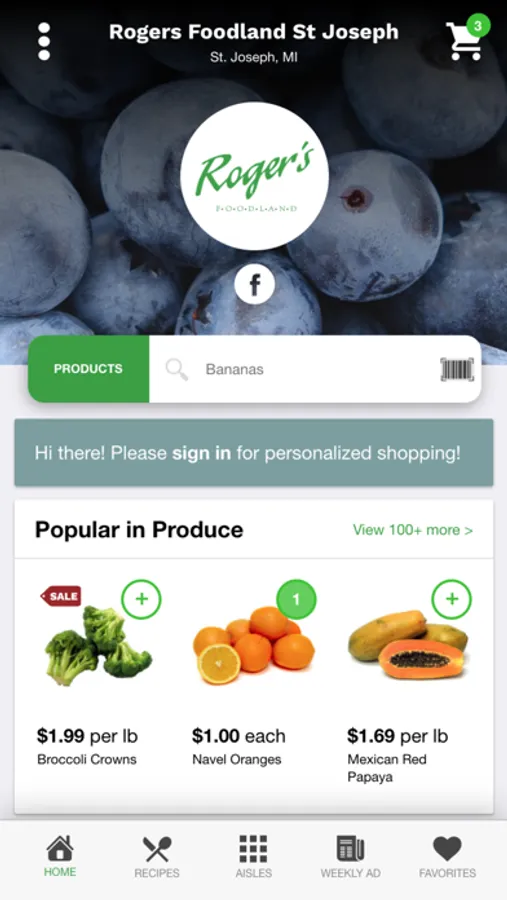 Order your groceries from Roger's Foodland on the go on your mobile device or from your iPad on your couch. Our award-winning grocery app makes grocery shopping a breeze with quick access to our weekly circular, an easy-to-use product search, detailed product details and labeling, tasty recipes and family meal planning tools. What could be better than that?
