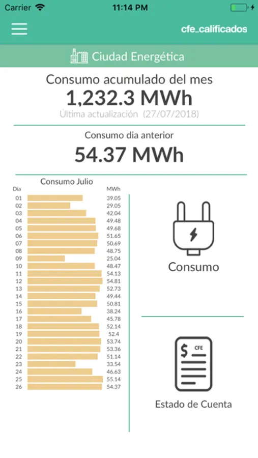 CFE Calificados ofrece a sus Clientes una herramienta de información sobre las características de sus servicios contratados, consumos de energía diarios y mensuales, facturación, entre otros. Además, permite la comunicación con sus ejecutivos de ventas y servicio para responder a sus solicitudes o reportar problemas.