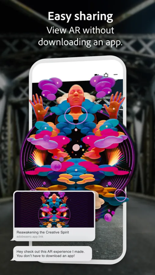 Whether you’ve completed your design or still want feedback from other collaborators, Aero gives you the power to share your creations for easy viewing. Now that Adobe Aero supports App Clips, people can view your Aero experiences on iOS without needing to install the Aero app. Plus, Aero experiences load much faster than before, enabling viewers to dive right in and start interacting with your content.
