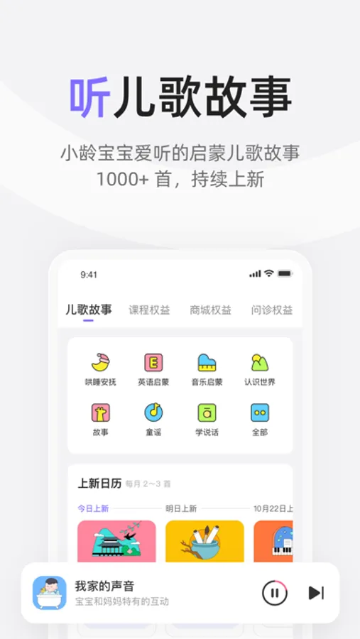 0~6 岁小龄宝宝爱听的启蒙儿歌故事,上千首优质音频由专业编曲团队联合早幼教教育专家共同研发,每周持续更新中。