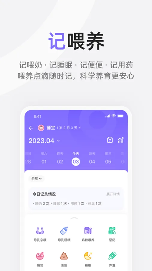 -系列记录工具:记经期、记胎动、记喂奶、记产检、记生长曲线……异常问题及时提醒,夜间模式 & 桌面快捷记录,让记录更高效更便利