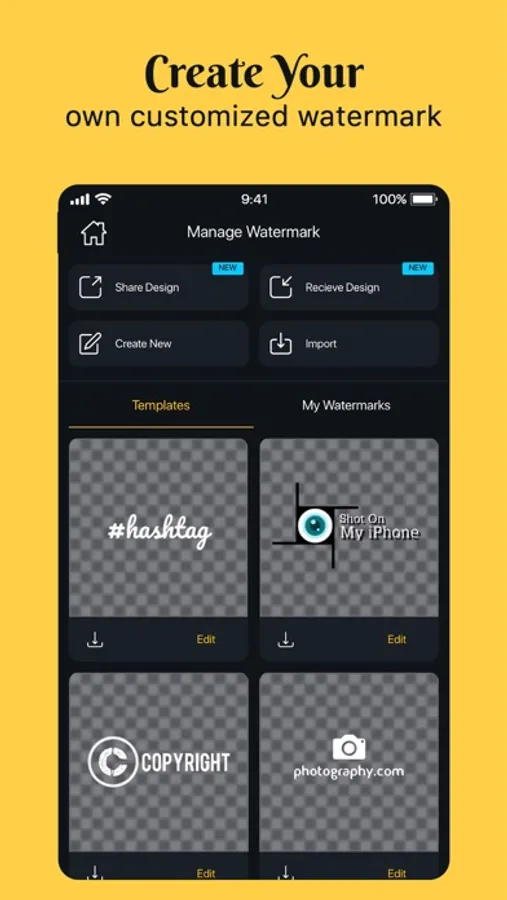 Create and Apply Fully customizable watermarks (We aren't kidding).