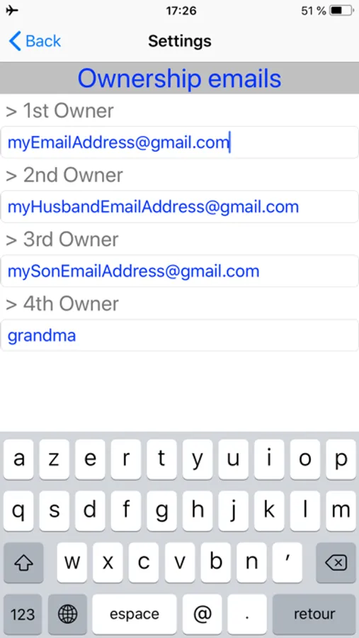 - Select the todo-owner with a picker. Just type the emails in settings and find the email-owner in the picker ! Why email? Because with right swipe on the todo detailed text, you will send an email reminder to the owner ;-)
