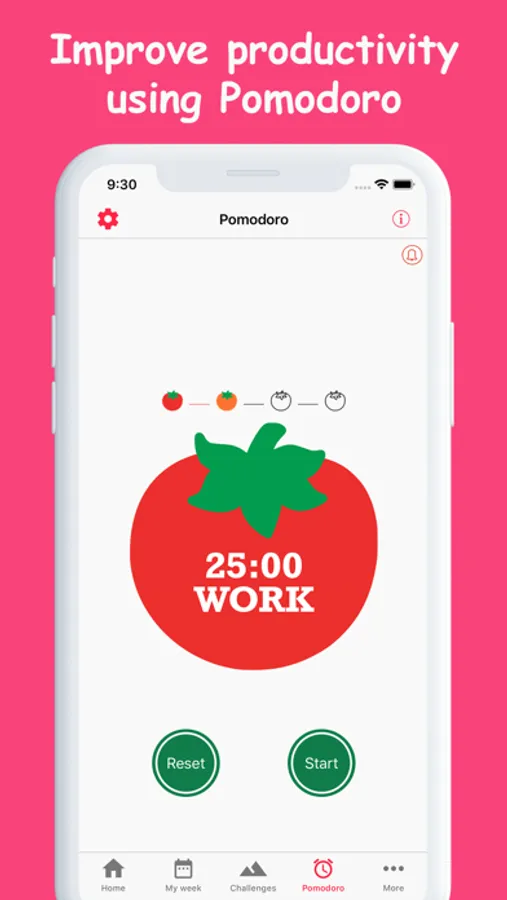 Pomodoro clock is integrated into the app will help you in case you apply the Pomodoro method to get more productiveness when doing your work.