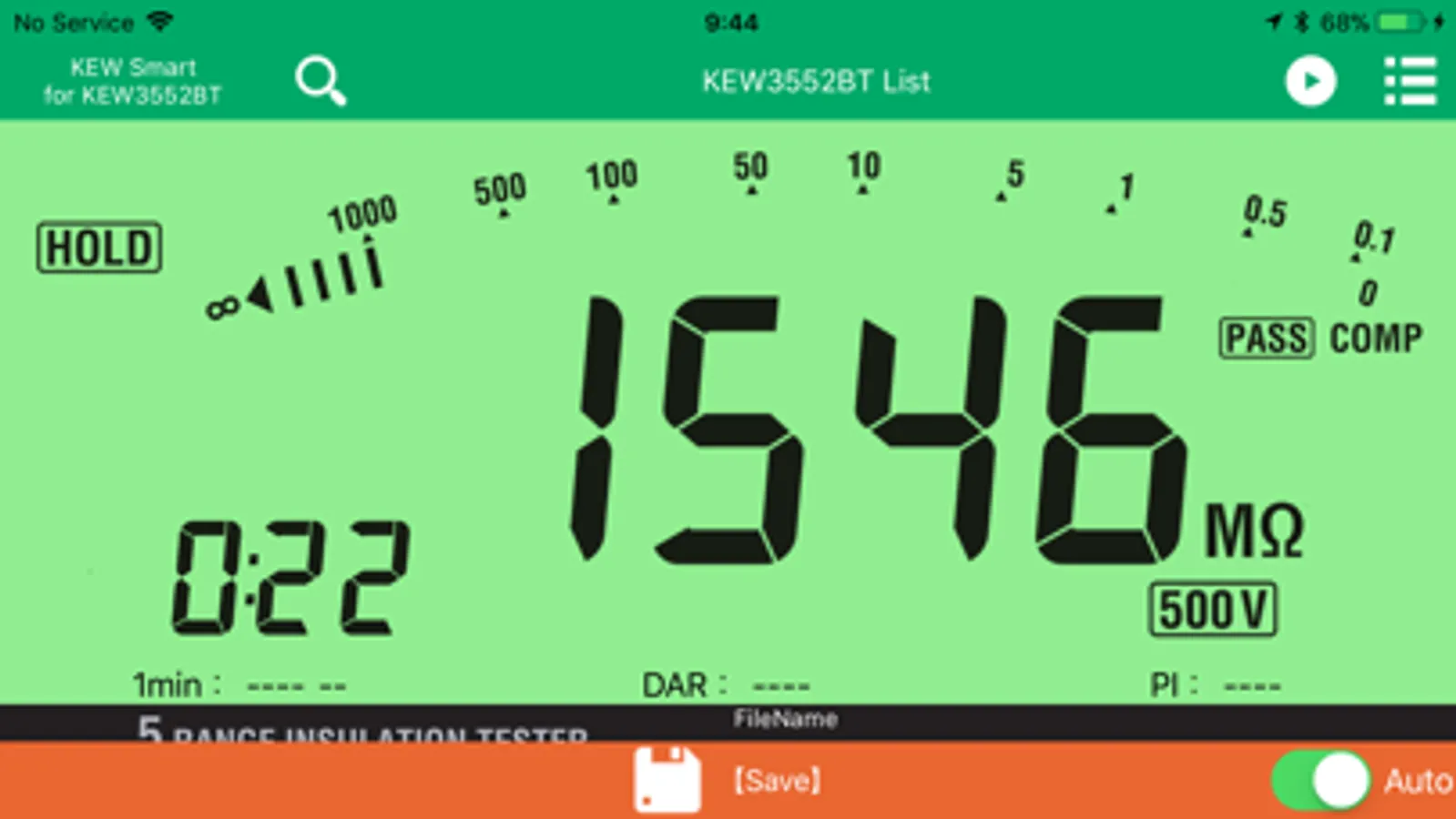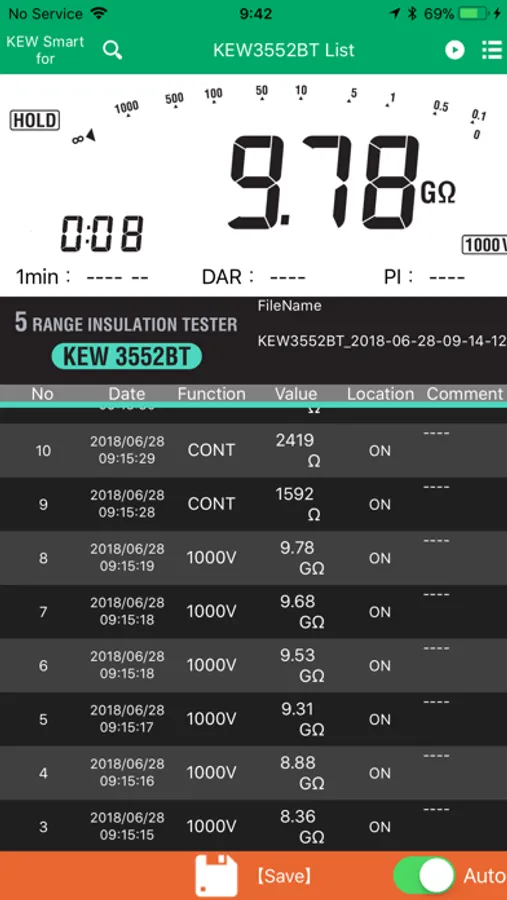 - Displaying: insulation resistance, low resistance, and voltage data,