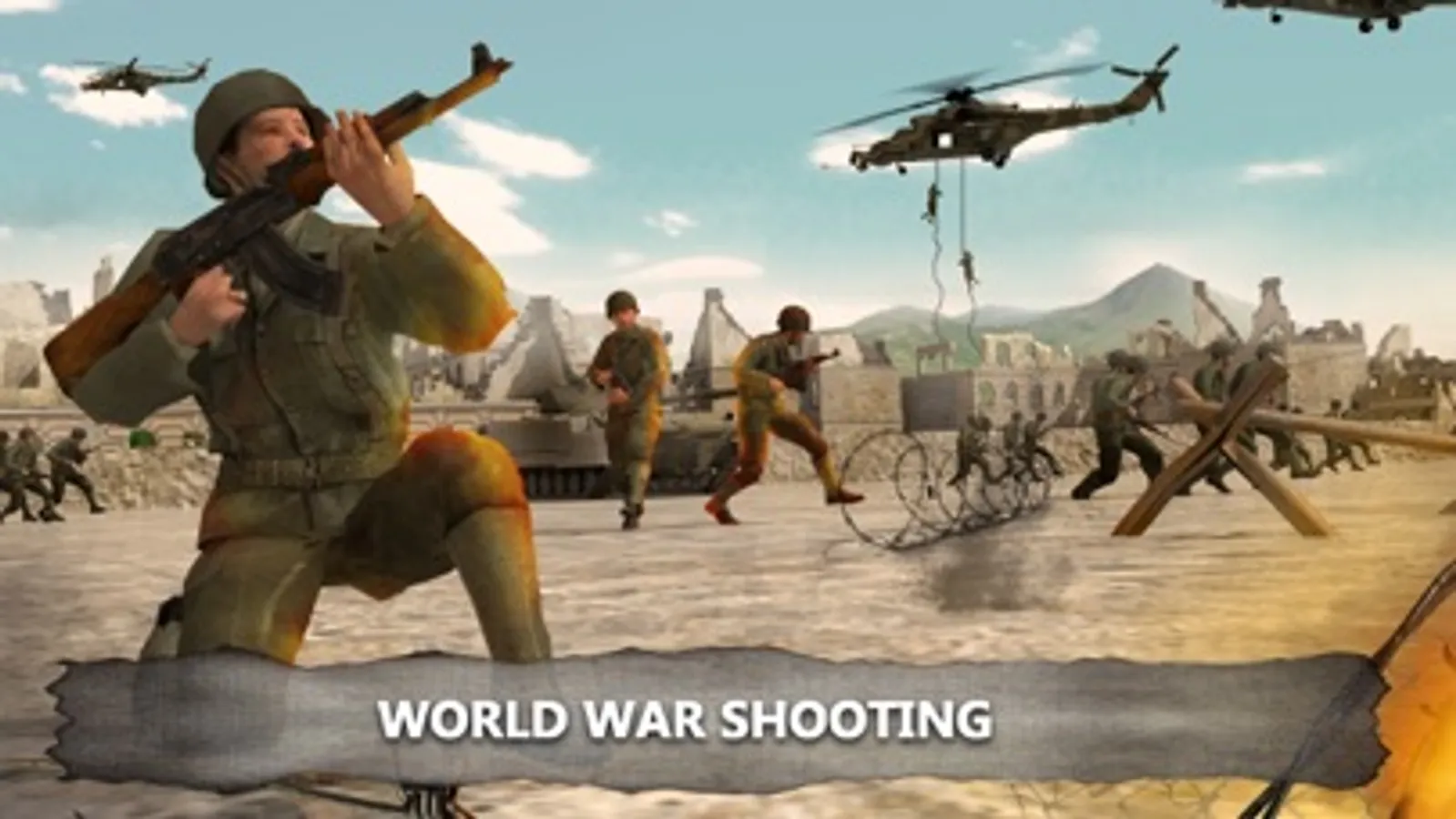 Conquer the world with all your power and strength and defeat the enemy troops. Stand at the frontline in the World War battleground to become the commando shooting hero. Put some example of your bravery and valor so that the world see you as the real hero of the WW2 military force. Set yourself in the military vehicles to go to the frontline war zone with other online shooter team battle. Use the deadly weapons to shoot the base camps of the ultimate FPS enemy troops. Get ready for the ultimate combat attack survival war hero battle field. You are the team lead of the US military force in the World War 2 game.