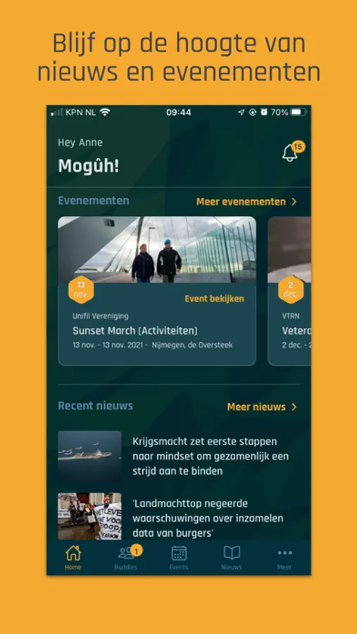 INFORMATIE: Vind alle informatie die voor jou als veteraan relevant is. De app biedt een duidelijk overzicht van veteranen-evenementen, nieuws rondom veteranen en Defensie, een praktische Q&A en contactgegevens van veteranenorganisaties en hulpverleners.