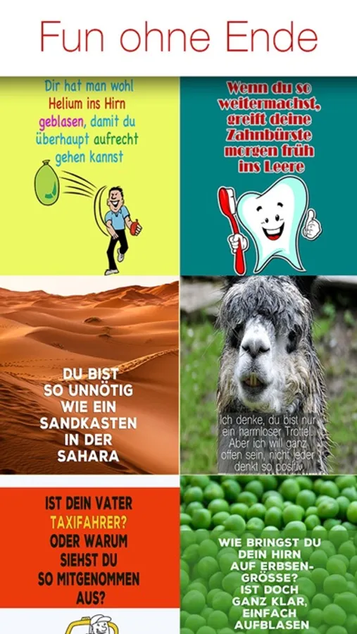 Freche, fiese Sprüche ohne Ende. Alle lustig bebildert, alle mega cool.
