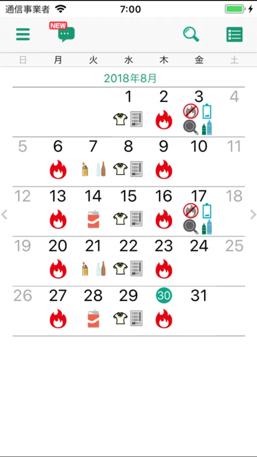 今日と明日、週ごと、月ごとの3パターンによるごみ収集日程を一つの画面ですぐに確認することができます。