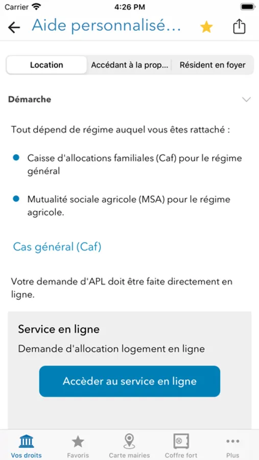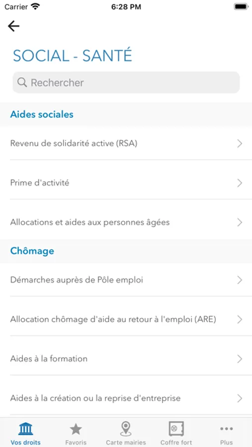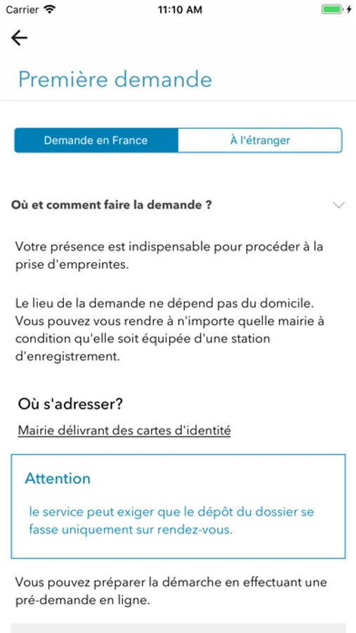 Avec « Carte » vous trouverez la mairie la plus proche pour réaliser votre démarche. Nous ajouterons prochainement les préfectures et d’autres éléments pour que vous ayez toujours votre service public le plus proche disponible dans l’application.