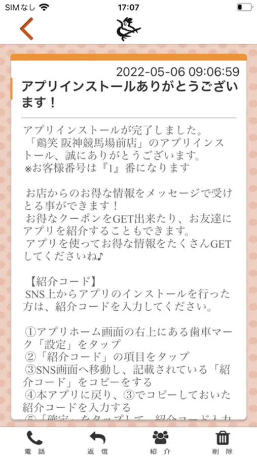 鶏笑のアプリをSNSを通じてお友達に紹介する事ができます。