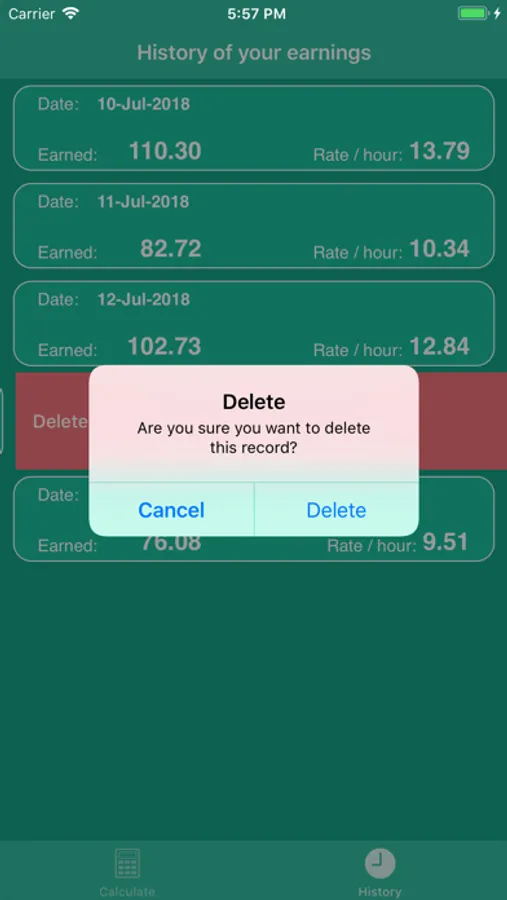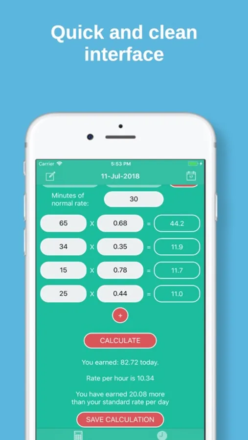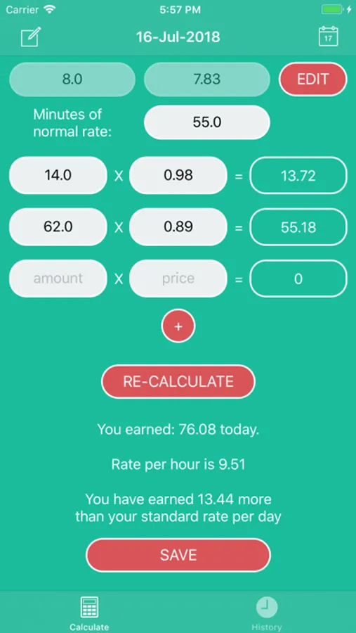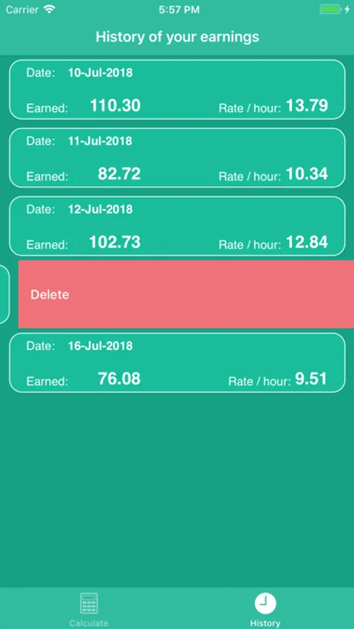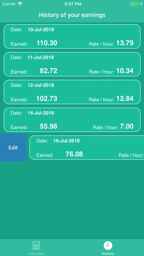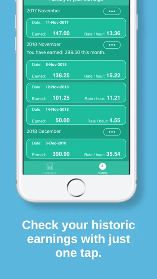 You are also able to save your calculations and view them in the Historic view. If you wish to see your monthly earnings just tap the ... button.