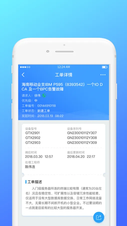 基于ITIL的最佳实践运维管理工具。通过移动终端完成客户请求、服务台流转、工程师处理、服务回访及关闭等流程,便于用户、工程师使用,便于服务台及客户及时跟踪和监督工单状态;系统将事件、问题、配置、备件等模块巧妙结合,遵循ITIL管理规范同时不失高效及简便,保障SLA交付质量。