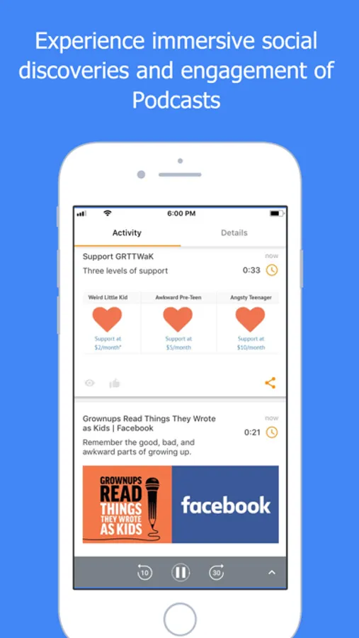 See the another side of the story with rich contextual content that accompanies your listening for a deeper, more engaging experience. Explore and discover new ways to interact with a Podcast and share captivating moments from shows you listen to. No need to pause and search for what's being mentioned in the podcast. Simply click on the image, website, hashtag, quiz, poll, or rating event as you listen to it being played.