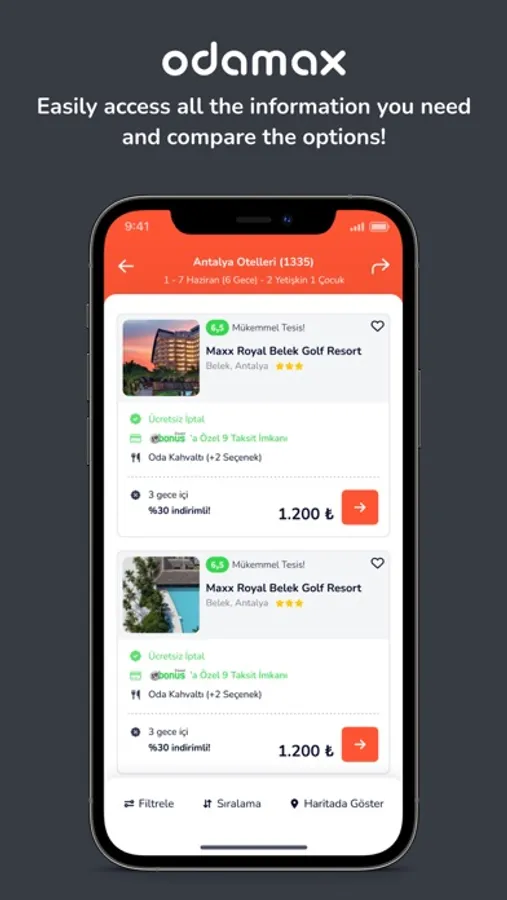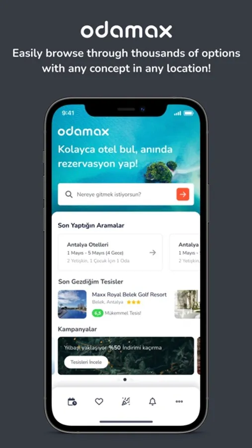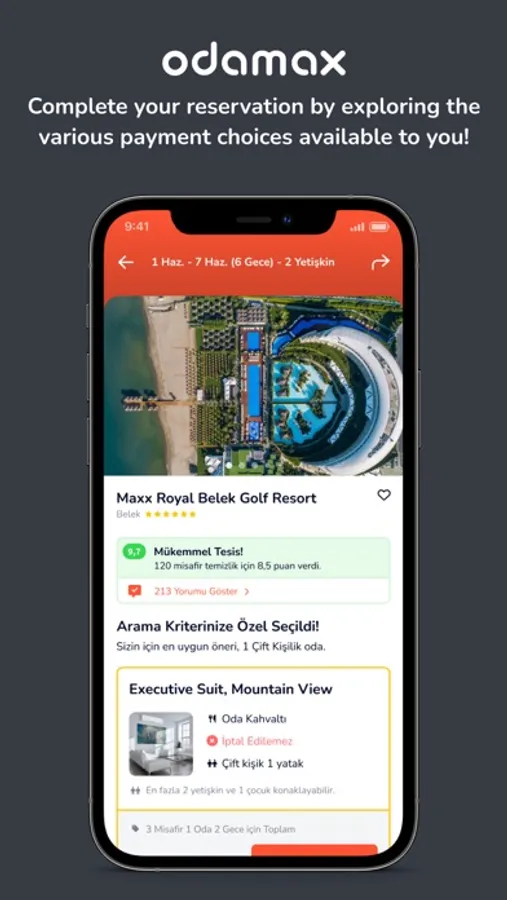 Advantage of paying at the property with the free booking opportunity… Thanks to the mobile application of Odamax.com, you can book your property instantly and make your payment at the property when your accommodation starts.