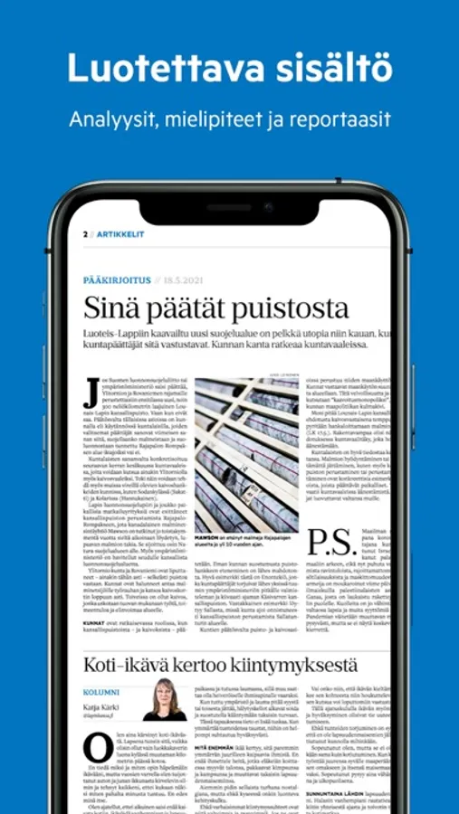 Lapin Kansa on Lapin ihmisten ääni Lapissa, Suomessa ja maailmalla. Lataa Lapin Kansa -sovellus ja tilaajana pääset lukemaan jatkuvasti päivittyvää tuoreimpien uutisten virtaa, näköislehtiä, syväluotaavia artikkeleita tai Luppo-juttuja. Voit halutessasi saada ilmoituksia puhelimeesi tärkeimmistä uutisista. Sovelluksesta löydät myös ajanvietettä, ristikoita ja sudokuita sekä Lapin Kansan kumppaniedut.
