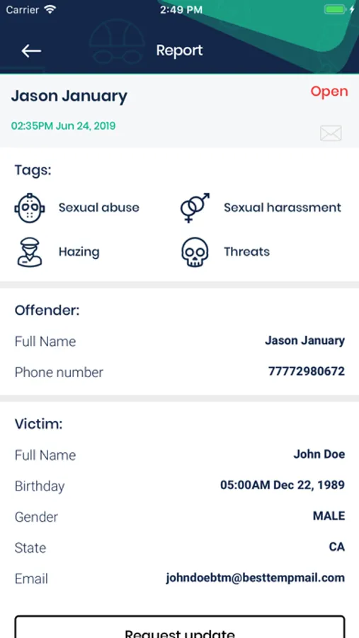 The Player’s Health Protect app provides a more personal way for anyone with a sports organization to report a concern anonymously or privately. All reports are reported directly to authorities for immediate investigation, not just to administrators within the organization alone. This assures a prompt, unbiased response.