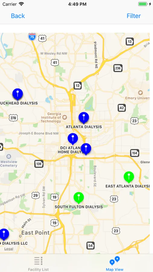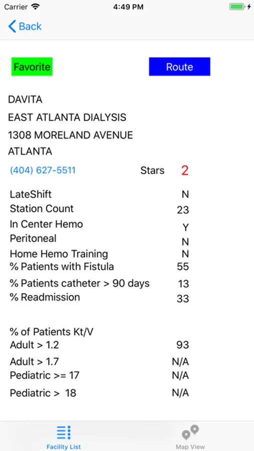 Mark your favorites and they will be displayed in Green so you can get back there easily. Call the facility directly from their detail page or get Apple Maps directions to go there!