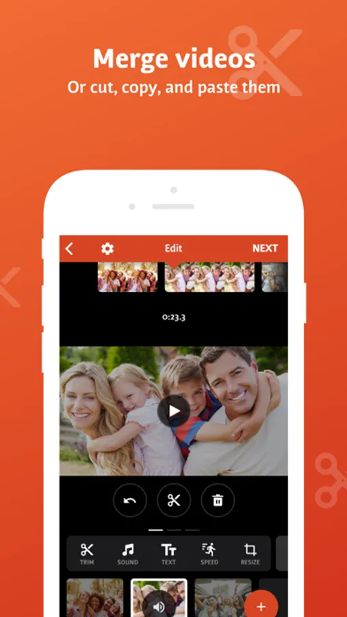 1. Trim: Cut out any unwanted moments. You can also split your videos into multiple clips.