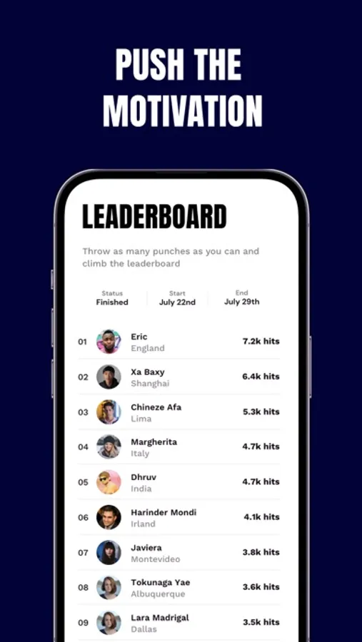 Training solo doesn’t mean you’re training alone. Join the PunchLab crew of combat fitness fans all over the world. Day or night, there will be people just like you working out on the app.